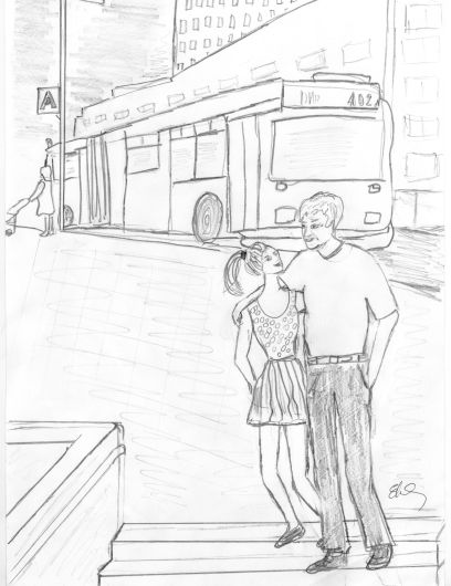 Skonani wizytą, Paweł z Tereską, odprowadzili swoich gości na pobliski przystanek autobusowy, skąd, o z góry znanym czasie, zgodnie z obowiązującym rozkładem jazdy, miał odjechać odpowiedni liniowy autobus miejski, by zawieźć dziadków wprost na osiedle, gdzie zamieszkiwali na trzynastym piętrze najwyższego tamtejszego wieżowca. Jeszcze na przystanku, ale już po odjeździe trochę zbyt długo wyczekiwanego autobusu, Paweł ramieniem objął mocno i czule Tereskę w taki sposób, że, zdążając niespiesznie z powrotem, zdawali się wyglądać na parę kochanków, a nie na młodego ojca z nastoletnią córką.