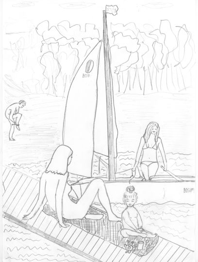 16. Zawód Wówczas, przed laty, a było to pewnego pięknego, słonecznego popołudnia, po wykonaniu ostatniego zwrotu przez rufę, nadającemu właściwy, docelowy kierunek łódce wprost do kei zaprzyjaźnionego rancza, unieruchomiwszy ster rumplem, zwolniła szoty z knag, by profilaktycznie zawczasu zrzucić żagle. Następnie przezornie podciągnęła fałem w górę miecz, nie chcąc ryzykować kolizji z dnem. Będąc tuż, tuż u celu, dobiła do brzegu, posłużywszy się pagajem. Z daleka uważnie lustrowała, jak Ewa i Paweł, pozbawieni odzienia, jak to oni, bawili się z małą, też gołą, Tereską, goniąc się radośnie na pomoście.